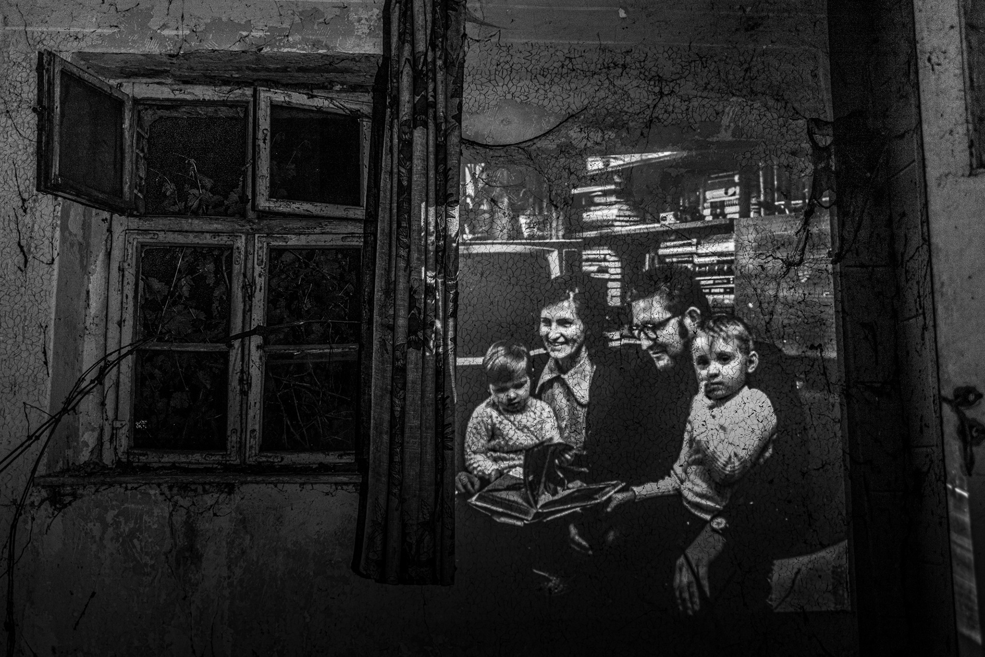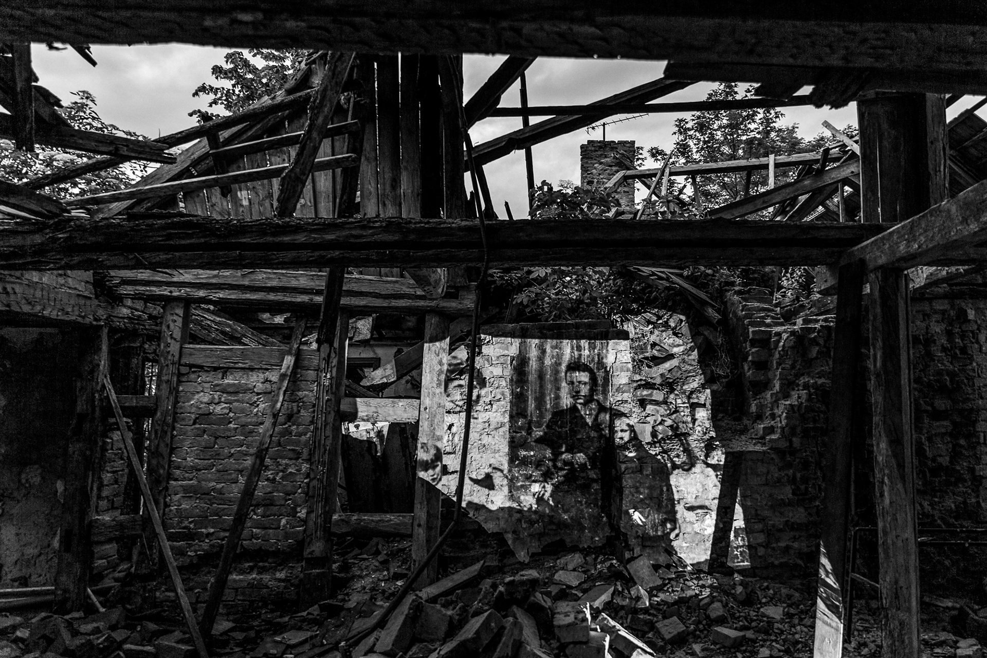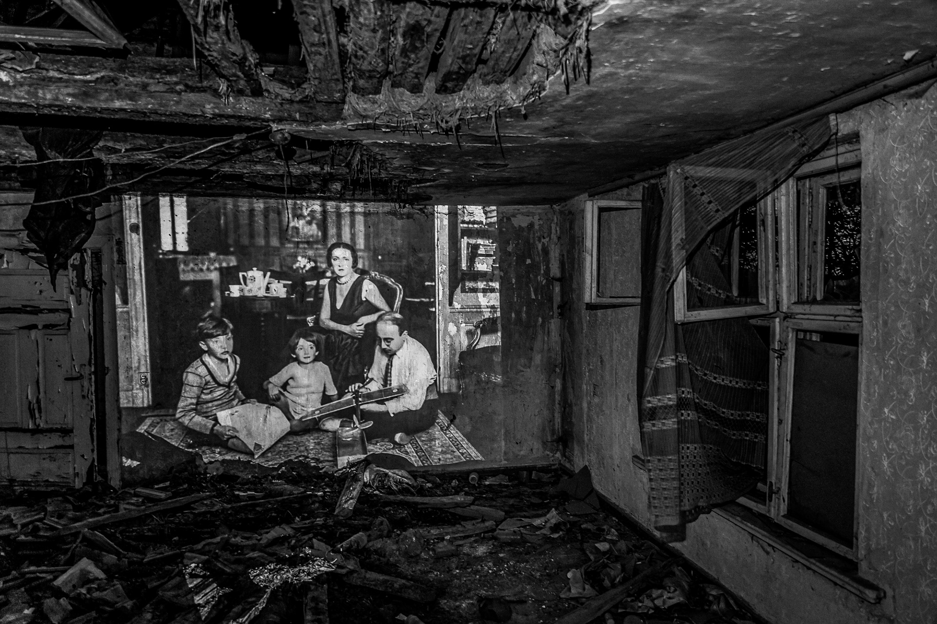 Seria “Retrospektrum” jest impresją autora zauroczonego archiwalnymi fotografiami które kolekcjonuje, ale też zafascynowanego opuszczonymi budynkami, niegdyś tętniącymi życiem, wypełnionymi zapachami - dziś porzuconymi, skrywającymi wiele nieznanych historii. Na fakturach popękanych murów i ścian wyświetla za pomocą rzutnika archiwalne kadry, które na nowo wskrzeszają ducha w te opuszczone miejsca. Przez swoje działanie uchyla nam furtki do tajemniczego świata przeszłości, do tego jak wcześniej mogło wyglądać tu życie.